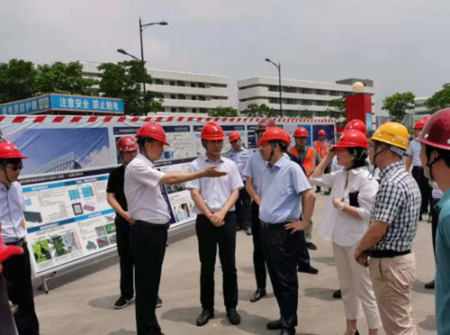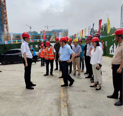 6月28日上午,南京市委常委、江北新區(qū)黨工委專職副書記羅群視察集團承建的國際化名醫(yī)中心項目,并督導安全生產(chǎn)工作。新區(qū)中央商務區(qū)主任陳建鵬、新區(qū)建設與交通局長許蕾等部門負責人隨同檢查,集團董事長管民良、副總經(jīng)理張幫華等在項目現(xiàn)場陪同。