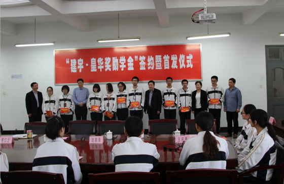 郵中黃仁云校長首先代表學(xué)校發(fā)表了熱情洋溢的講話,對建宇?皇華獎(jiǎng)助學(xué)金的捐贈(zèng)表達(dá)了謝意和敬意,隨后皇華國際大酒店王衛(wèi)紅董事長代表集團(tuán)與郵中黃仁云校長簽署五十萬元捐贈(zèng)協(xié)議。董事長管民良及與會(huì)領(lǐng)導(dǎo)共同為學(xué)生發(fā)放了獎(jiǎng)助學(xué)金,首批20多名郵中學(xué)子現(xiàn)場接受獎(jiǎng)勵(lì)和資助。受助學(xué)生陸佳作為學(xué)生代表發(fā)言,感謝學(xué)校和建宇集團(tuán)的關(guān)心和培養(yǎng)。