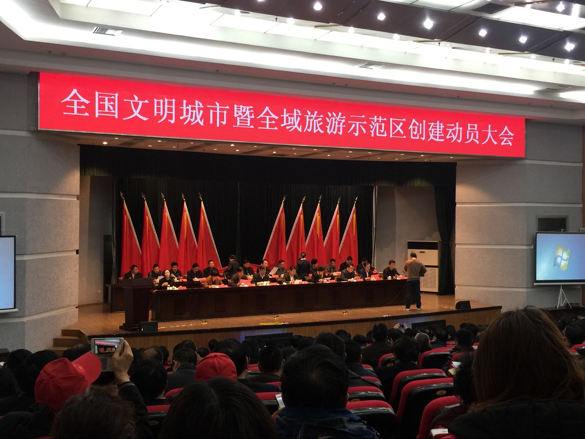 會(huì)議對(duì)2013至2015年度江蘇省文明鄉(xiāng)鎮(zhèn)、省文明單位、省文明社區(qū)、省文明村、省文明校園進(jìn)行了表彰和頒獎(jiǎng);“一鎮(zhèn)兩區(qū)”和相關(guān)部門遞交全國(guó)文明城市創(chuàng)建責(zé)任狀;市城管局、市公安交警大隊(duì)、高郵鎮(zhèn)就全國(guó)文明城市創(chuàng)建工作作表態(tài)發(fā)言,市旅游局、市文旅集團(tuán)就國(guó)家全域旅游示范區(qū)創(chuàng)建工作作表態(tài)發(fā)言;全體與會(huì)人員還觀看了全國(guó)文明城市創(chuàng)建暗訪片。