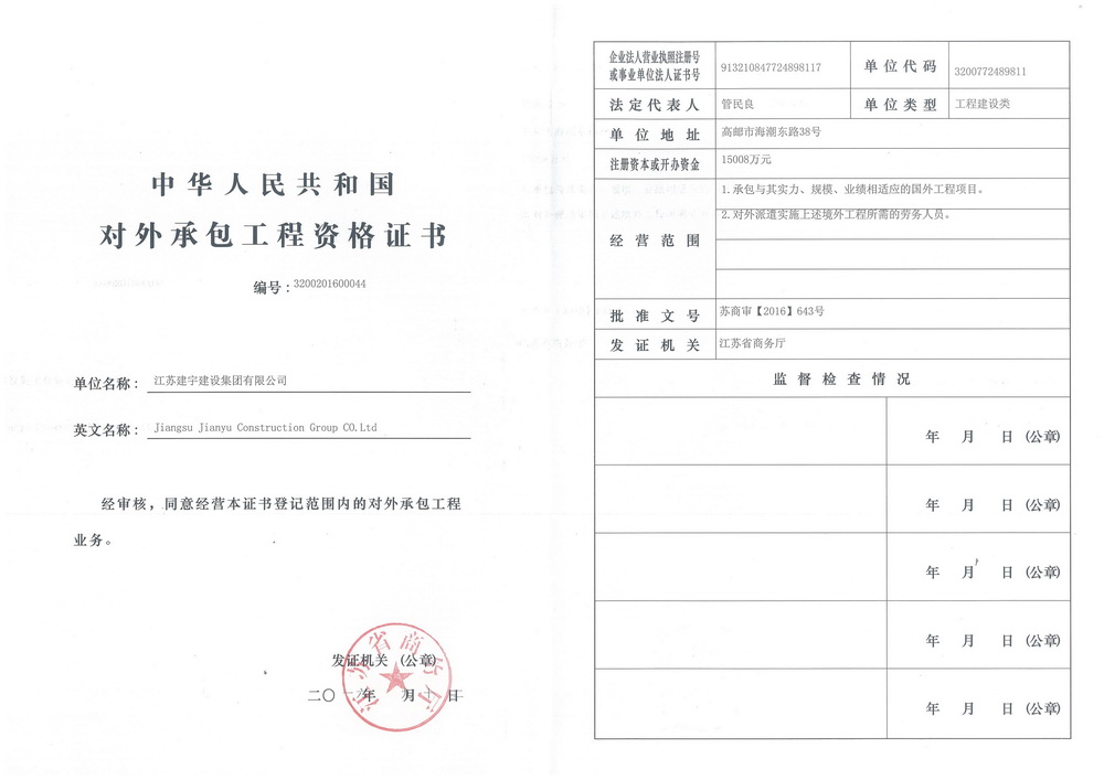 為響應省政府加快推進全省建筑企業(yè)“走出去”的發(fā)展戰(zhàn)略,搶抓“一帶一路”的建設重大機遇,集團公司申報了“對外承包工程經(jīng)營資格證書”并于