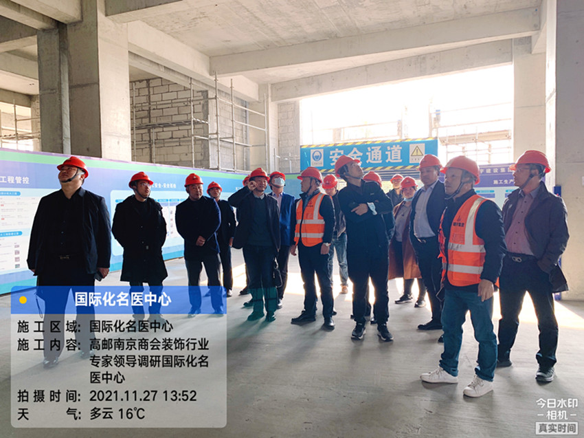 專委會一行首先集體觀摩集團南京公司的國際化名醫(yī)中心項目,南京公司副總經理周月波、項目經理陳超從安全文明、裝配式施工、智慧管理平臺、BIM技術等多維度、多層次向參會人員介紹了項目情況。