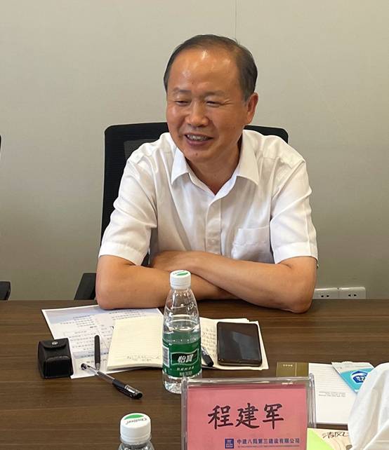 中建八局三公司專務(wù)程建軍、副總工程師沈興東、技術(shù)中心主任黃峰等熱情接待董事長之行。交流會上,程總對集團一行的到來表示熱烈歡迎,結(jié)合八局三公司宣傳片,介紹了三公司的發(fā)展歷史和新形勢下的發(fā)展戰(zhàn)略。
