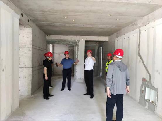 楊斌副主任一行在董事長(zhǎng)管民良的陪同下深入項(xiàng)目一線工地進(jìn)行了細(xì)致了解,項(xiàng)目負(fù)責(zé)人柏甫彥向楊主任一行匯報(bào)了工程概況、項(xiàng)目建設(shè)進(jìn)度、質(zhì)量管理、安全管理、現(xiàn)場(chǎng)文明施工、揚(yáng)塵管理、疫情常態(tài)化防控等情況。