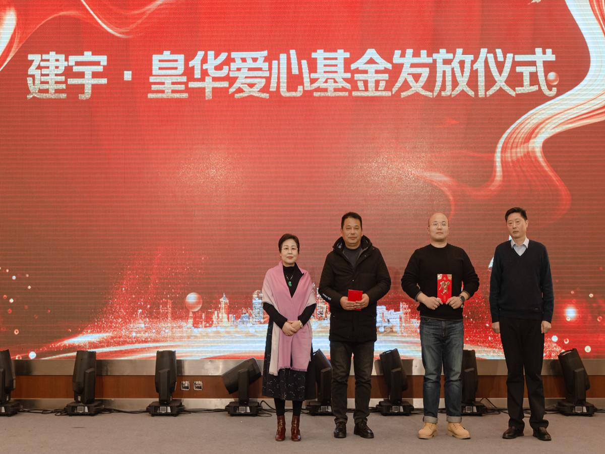 晚宴最后,董事長管民良和皇華國際大酒店董事長王衛(wèi)紅共同為集團困難員工發(fā)放了2022年度建宇?皇華員工保障基金;為晚會優(yōu)秀節(jié)目表演者現(xiàn)場頒獎。