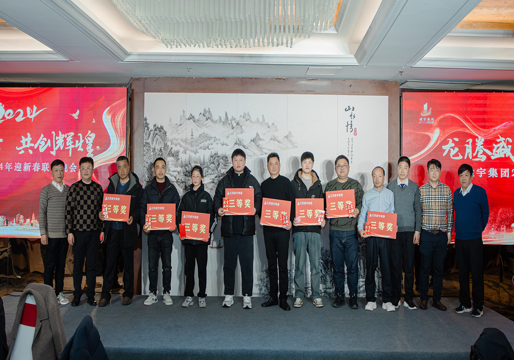 本屆年會以“ 龍騰盛世 共創(chuàng)輝煌”為主題,集團全體人員在年會上分享喜悅,踴躍展示才藝。集團董事長管民良攜高管團隊出席晚會,與全體員工共享這一歡樂時光。并為文體比賽、征文比賽獲勝者頒獎,為晚會幸運者抽獎。