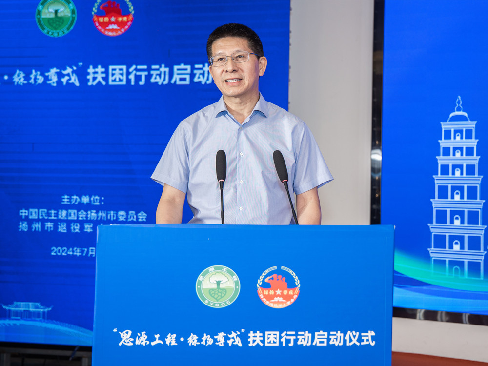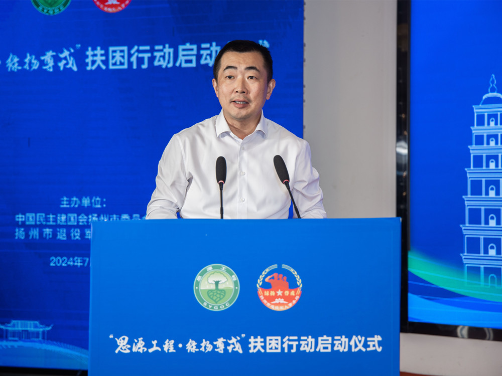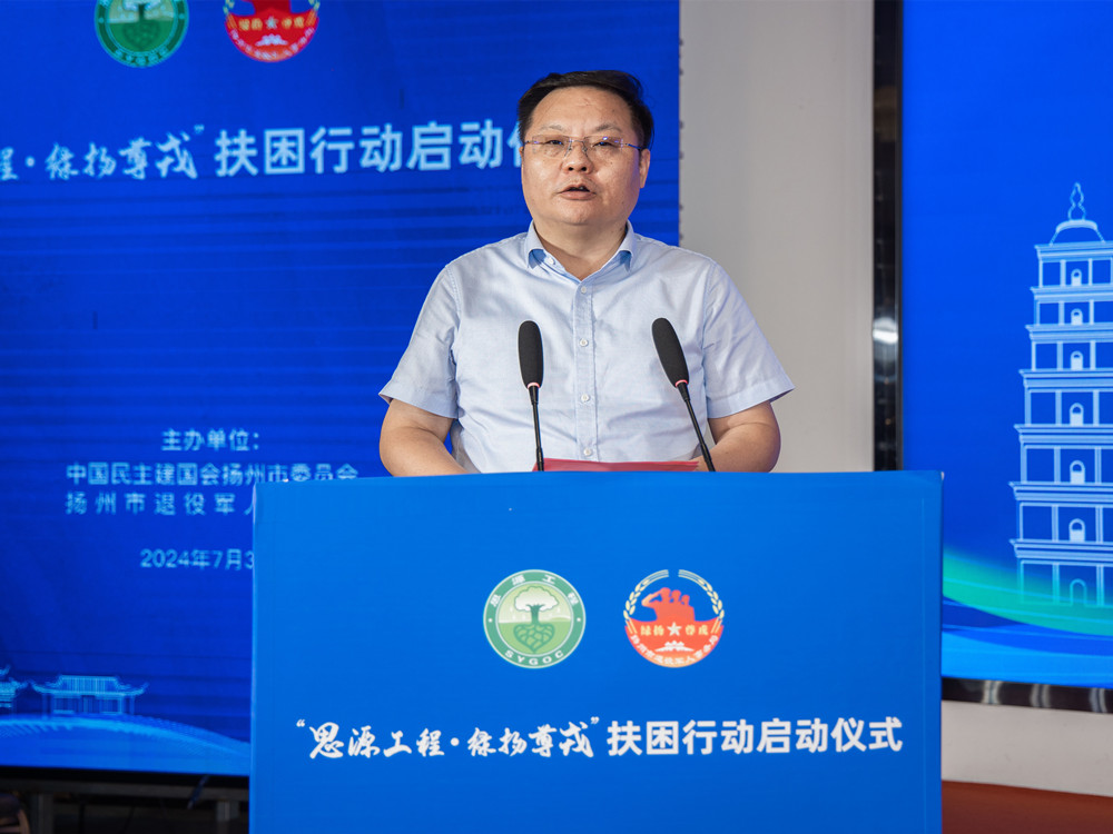 7月30日下午,由中國民主建國會揚(yáng)州市委員會、揚(yáng)州市退役軍人事務(wù)局聯(lián)合主辦的“思源工程·綠揚(yáng)尊戎”扶困行動啟動儀式在郵舉行。揚(yáng)州市委常委、統(tǒng)戰(zhàn)部部長丁四海和高郵市委書記張利、民建揚(yáng)州市主委周啟泉等多位領(lǐng)導(dǎo)蒞臨現(xiàn)場,共同見證這一公益盛事。集團(tuán)董事長管民良作為民建高郵支部副主委及這項公益活動的率先響應(yīng)企業(yè),應(yīng)邀出席活動并發(fā)表了公益倡議。