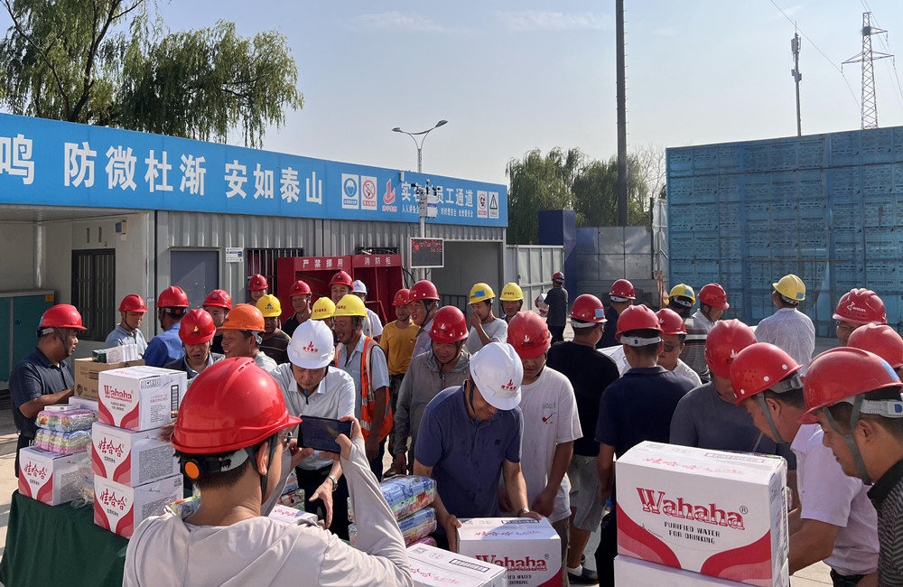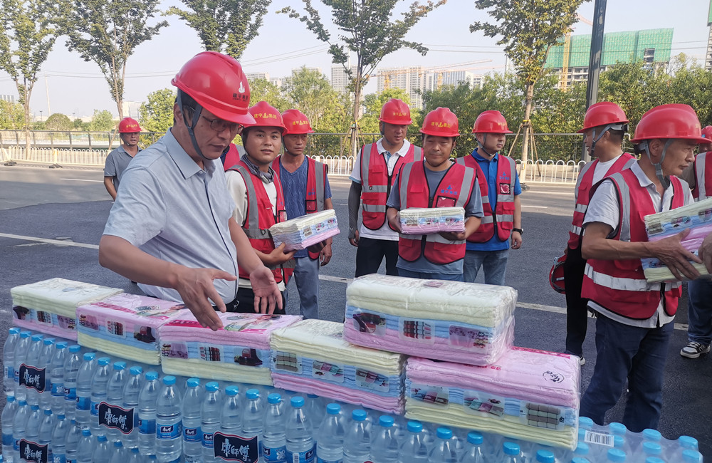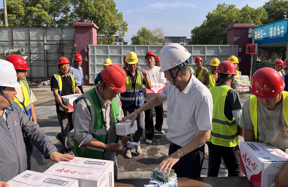 接著,董事長管民良等集團高管將藿香正氣水、毛巾、花露水、飲用水等防暑降溫物品分別送到一線施工人員手中,向一線員工傳達集團的關(guān)心問候,感謝他們在高溫下堅守崗位、奉獻付出,囑咐大家做好高溫防護措施,注重勞逸結(jié)合,保障身體健康。