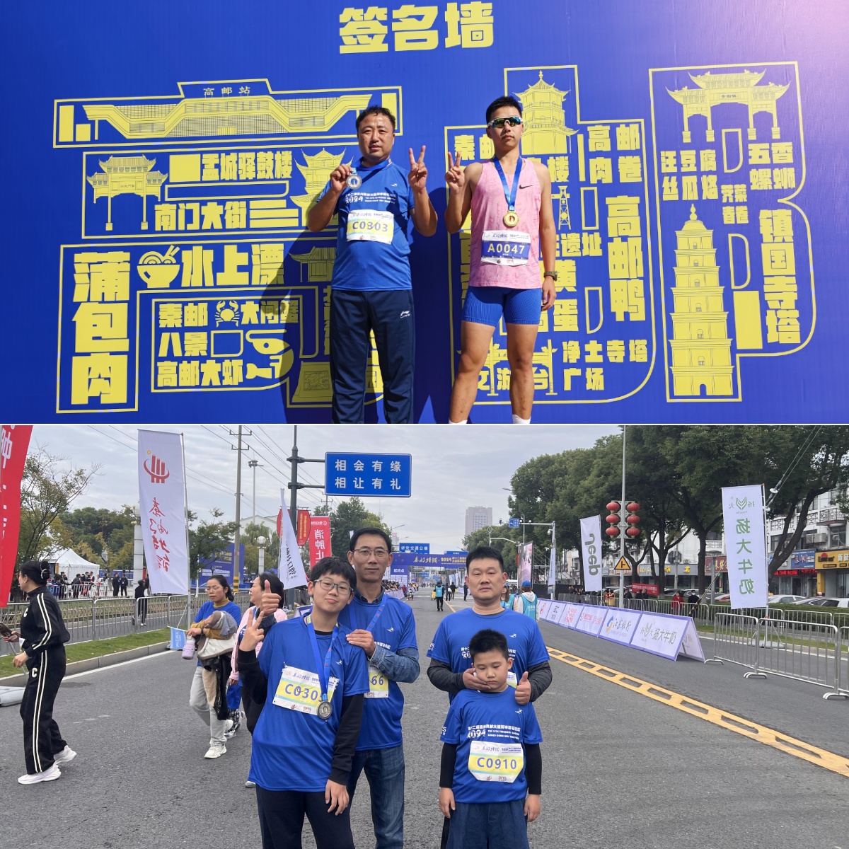 賽道上,建宇跑團成員們并肩作戰(zhàn),特別稱贊的是跑團中還有三對父子,分別來自南京公司的唐言圖父子、揚州公司的吳俊父子、高郵公司的丁文煒父子,其中最大的唐書舜參加了21公里半程馬拉松。大家一邊欣賞沿途的自然風(fēng)光,一邊相互鼓勵,保持著較好的節(jié)奏,共同向終點沖刺。