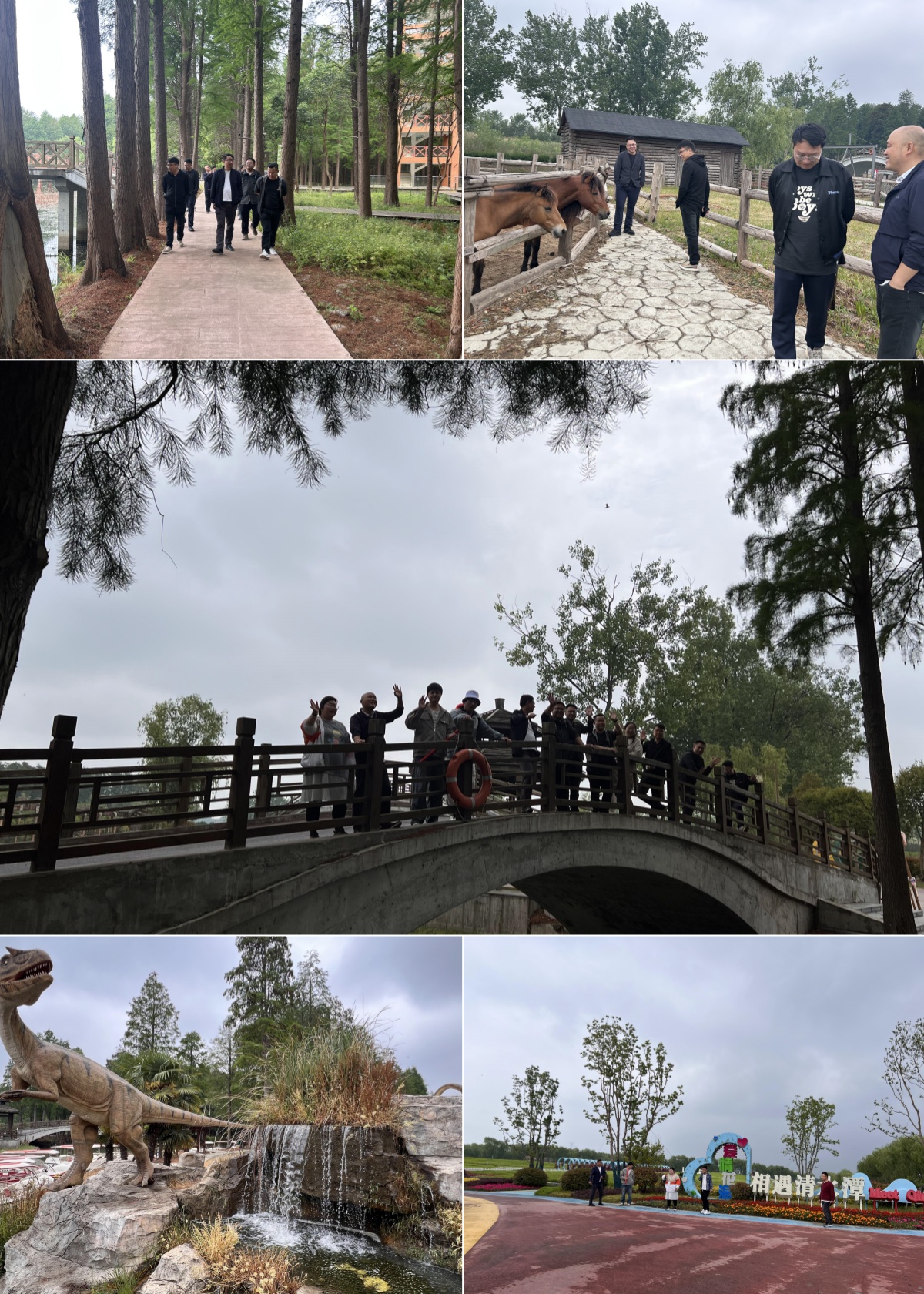 下船后,大家沿著公園蜿蜒曲折的小徑悠然漫步。小徑兩旁,繁花似錦,綠草如茵,仿佛是大自然精心繪制的一幅畫卷。途徑四季花海,更是美不勝收,不同顏色種類的花卉在此匯聚,綻放出各自獨(dú)特的魅力,讓人仿佛置身于花的海洋。大家時(shí)而駐足觀賞,用相機(jī)捕捉下夏日盛景中的每一個(gè)精彩瞬間;時(shí)而歡聲笑語,分享著彼此在工作與生活中的趣事。一場(chǎng)濕地徒步與自然觀察活動(dòng)就此展開,大家仔細(xì)探尋著濕地中的每一處奇妙景觀,仿佛置身于一個(gè)充滿奧秘的生態(tài)課堂。行至小徑中段,揭陽塔映入眾人眼簾。大家難掩興奮,紛紛拾級(jí)而上,登高觀景。從塔頂下來后,不遠(yuǎn)處便是“侏羅紀(jì)”主題區(qū)域。區(qū)域內(nèi)一尊尊恐龍模型造型逼真、姿態(tài)各異,以獨(dú)特的方式向大家問好。離開“侏羅紀(jì)”區(qū)域,小型動(dòng)物園出現(xiàn)在眼前。圍欄內(nèi),小矮馬、小羊和小兔子們正悠閑地吃著草,大家紛紛圍上前去,與小動(dòng)物們展開互動(dòng)。