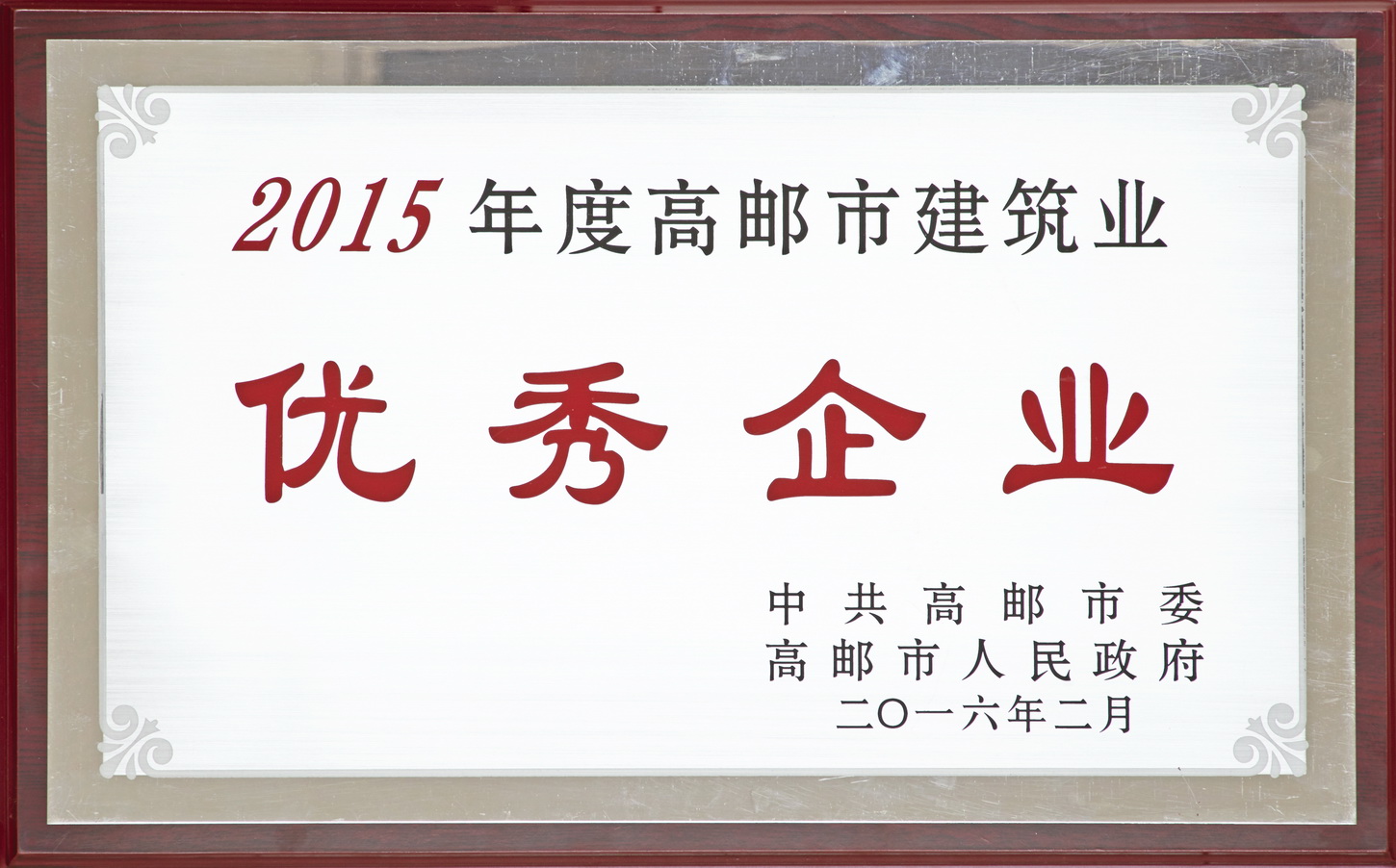 2015年度高郵市建筑業(yè)“優(yōu)秀企業(yè)”