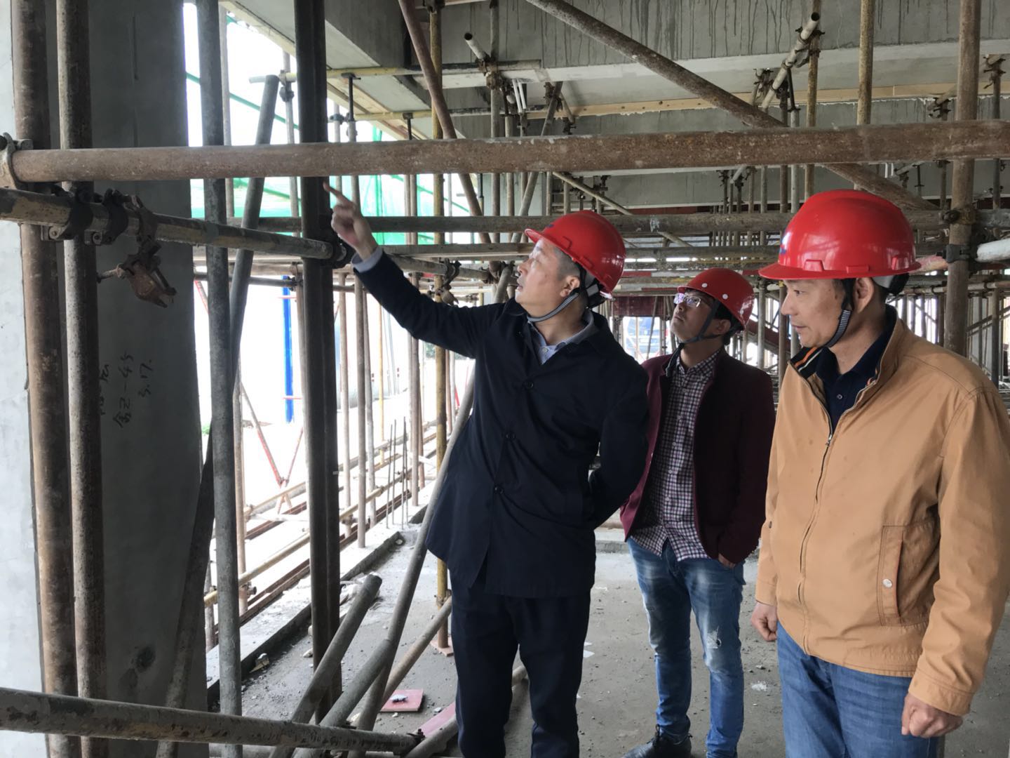 在深入察看了施工現(xiàn)場后,董事長管民良認真聽取了項目負責人與相關(guān)現(xiàn)場管理人員的情況介紹,并深入每一棟樓的施工場地,詳細詢問了現(xiàn)場的質(zhì)量、安全、進度情況,在主體一層仔細察看了預(yù)制梁排架支撐的搭設(shè),柱、梁、板的節(jié)點支模情況,指示要嚴格按照裝配式建筑施工規(guī)范施工。隨后登上吊裝工作層,詳細了解了裝配式建筑施工重要吊裝工序,和宿遷分公司經(jīng)理湯真標,現(xiàn)場項目部經(jīng)理周軍共同探討了預(yù)制柱的下部灌漿技術(shù)和上部錨接技術(shù),要求一定要抓好灌漿和錨接這兩個關(guān)鍵工序。同時針對工地現(xiàn)場布置存在的問題提出了要求,必須達到省文明工地標準,迎接各級領(lǐng)導檢查觀摩。