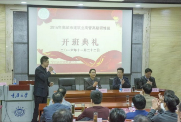 重慶大學繼續(xù)教育學院副院長馮清平介紹了重慶大學的發(fā)展歷程、辦學理念、治學思想和學術(shù)地位,對繼續(xù)教育學院學科以及培訓建筑業(yè)企業(yè)高層管理人員的工作情況作了說明。潘建奇副市長分析了我市建筑業(yè)企業(yè)面臨的新形勢,闡述了本次在重慶大學舉辦筑業(yè)企業(yè)高層管理人員專題研修班的重要意義。