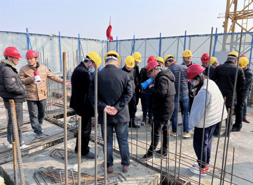 全體觀摩人員分成了兩組,首先聽取了項(xiàng)目經(jīng)理孟學(xué)峰有關(guān)項(xiàng)目簡介、安全文明施工及工程的亮點(diǎn)介紹。隨后,與會(huì)人員現(xiàn)場實(shí)地觀摩了新工藝的應(yīng)用。