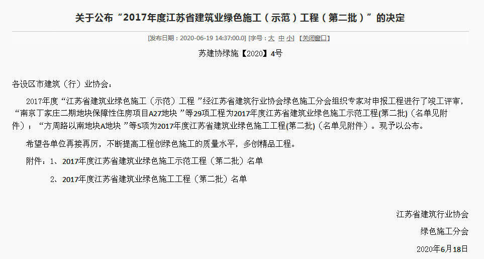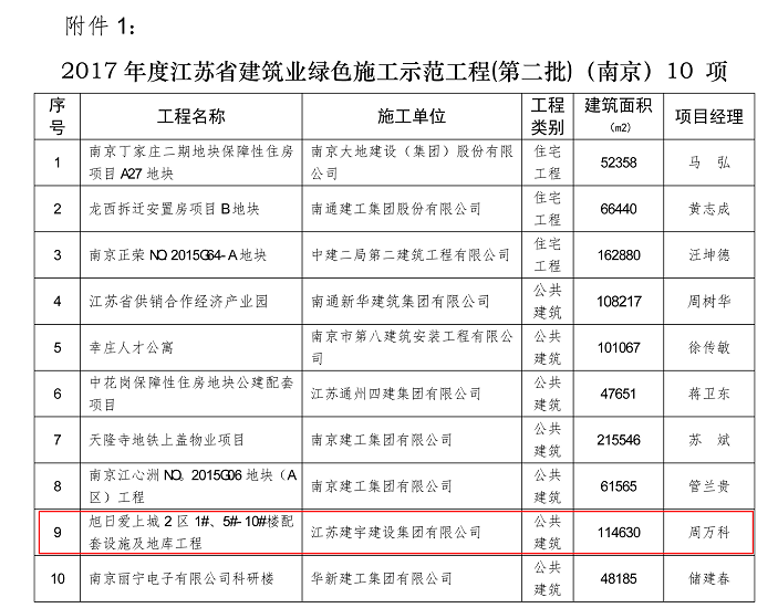 近日,江蘇省建筑行業(yè)協(xié)會(huì)發(fā)布公告,集團(tuán)南京分公司承建的旭日愛(ài)上城2區(qū)1#、5#-10#樓配套設(shè)施及地庫(kù)工程項(xiàng)目榮獲“江蘇省建筑業(yè)綠色施工示范工程”稱號(hào)。
